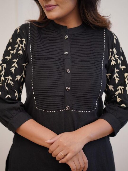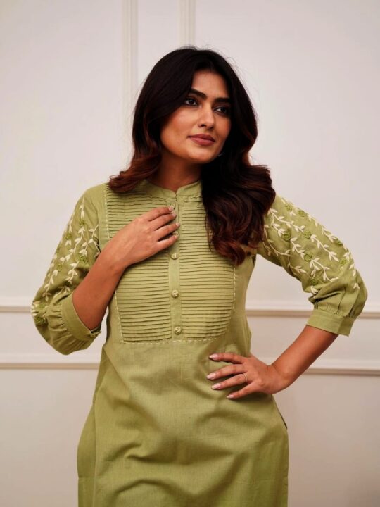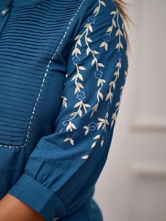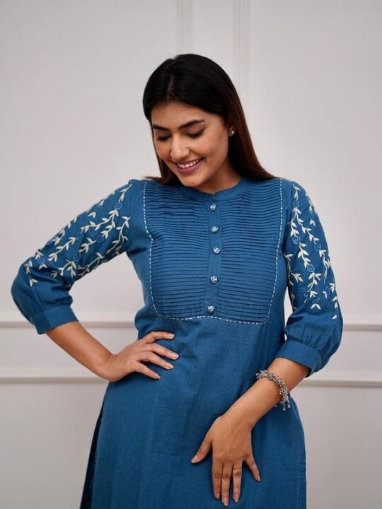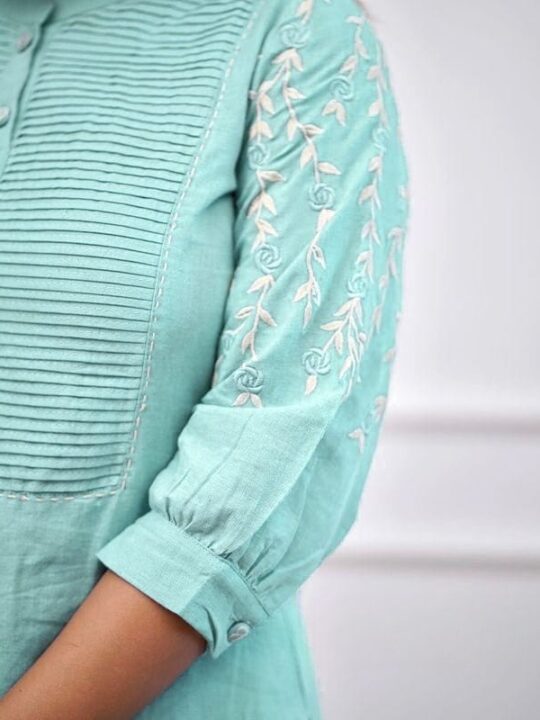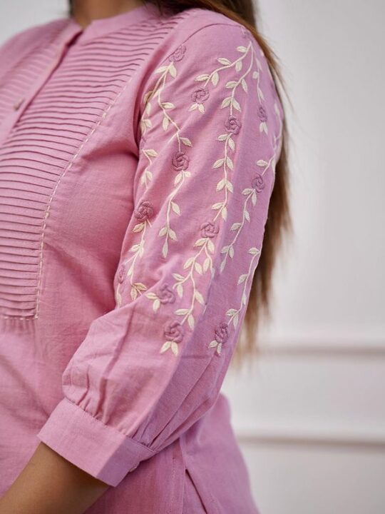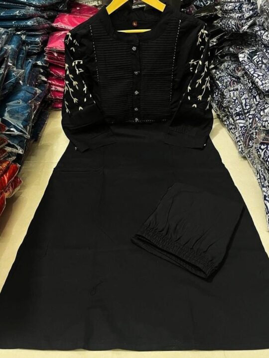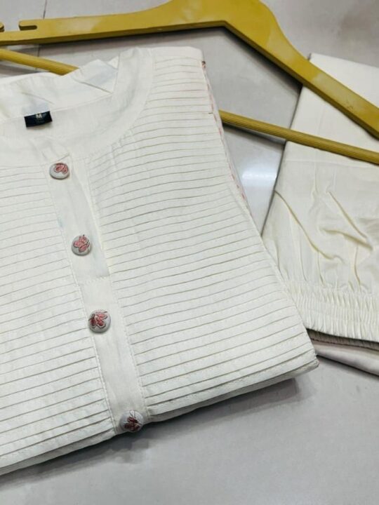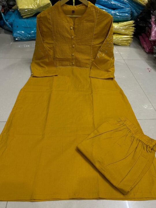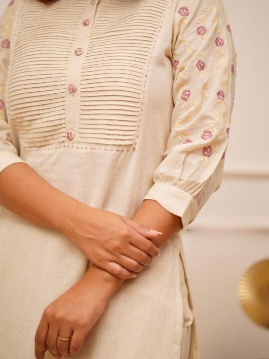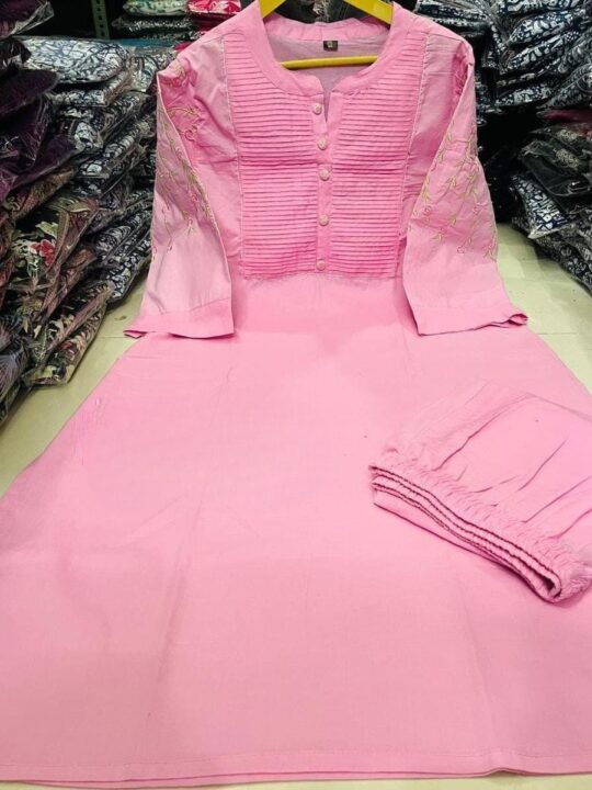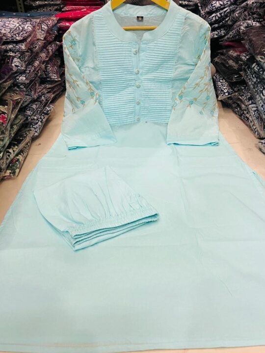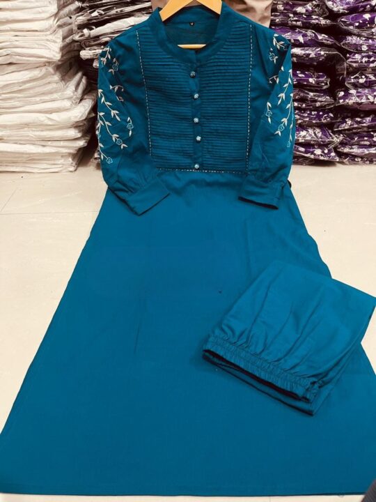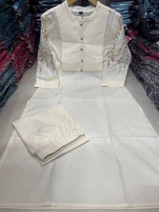 Upgrade your style with this embroidered cotton kurta set for women. Perfect for office wear with pintuck detail and breathable comfort all day.