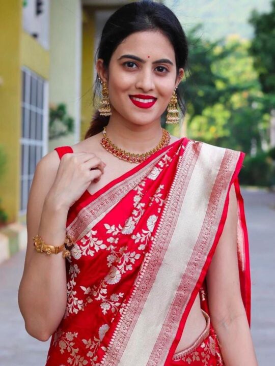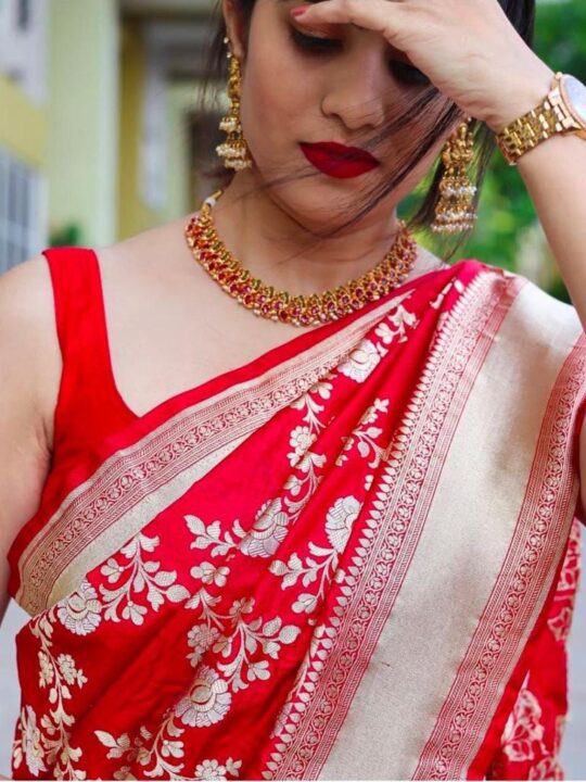 Pair this saree with traditional gold jewelry for weddings or festivals. You can also wear it with statement earrings and a sleek bun for parties. Because of its soft texture, it drapes beautifully and suits all age groups. Furthermore, it works well for both day and evening events.