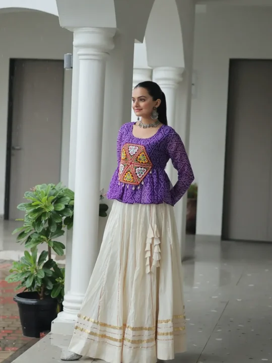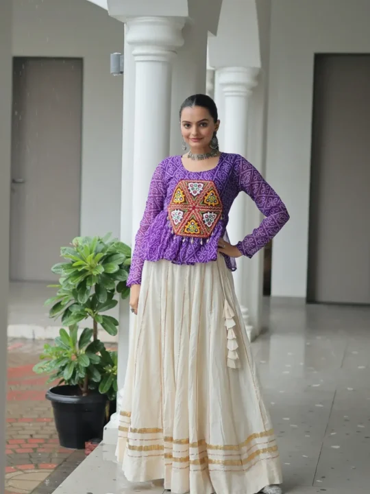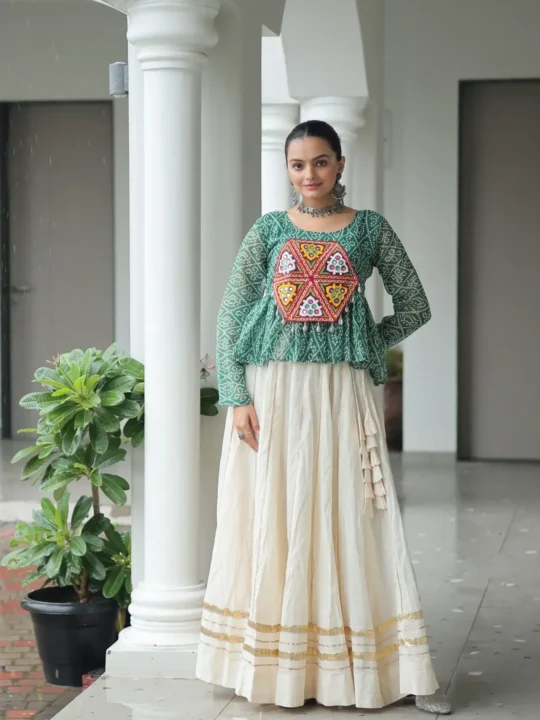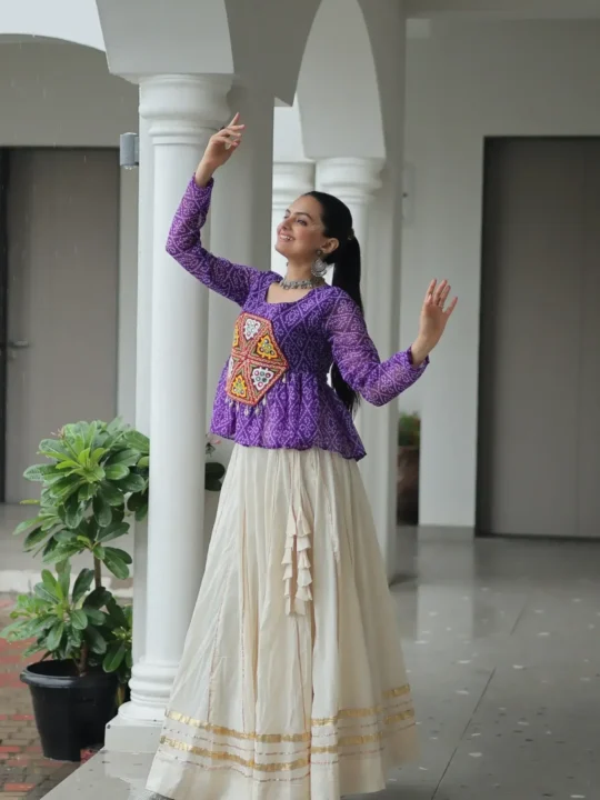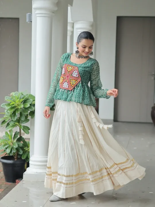 You can easily wear this lehenga. It is perfect for festive events like Navratri. The vibrant colors are also great for family gatherings. You can pair it with silver oxidized jewelry. For example, try some lovely bangles. This outfit will make you feel confident and elegant.