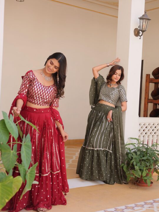 Georgette lehenga choli, fully stitched with detailed 7mm sequin embroidery, designed to flatter every woman. Crafted for elegance and sparkle, this stunning set ensures you shine at every festive celebration effortlessly.