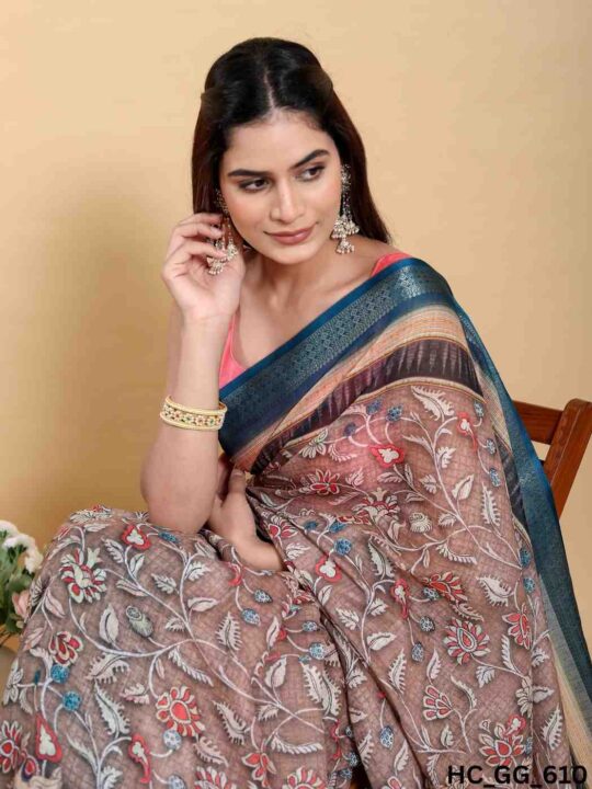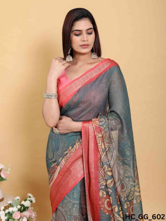 Linen Cotton Saree – Jacquard Patta | Pramukhmart