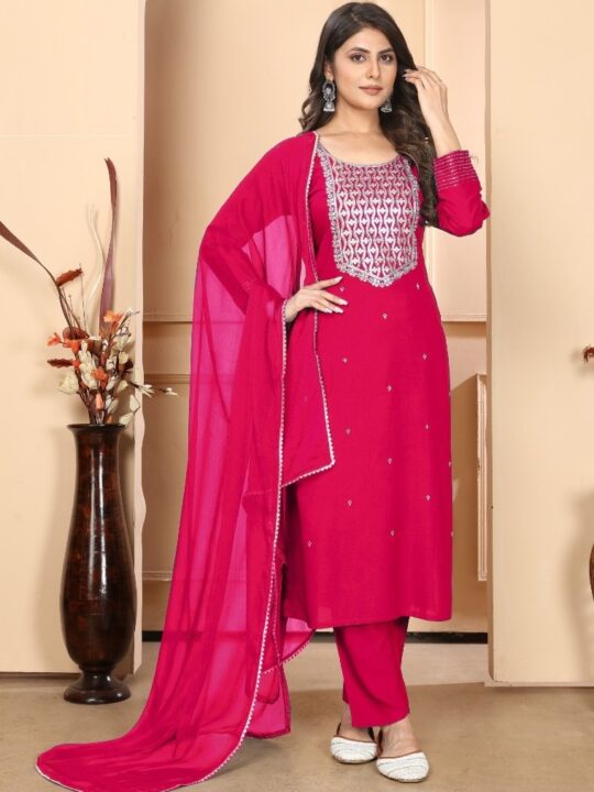 Step into effortless elegance with this stunning Riyon embroidery suit set from Pramukhmart. Designed for women who love both style and comfort, this three-piece outfit is perfect for every festive, casual, or semi-formal moment.