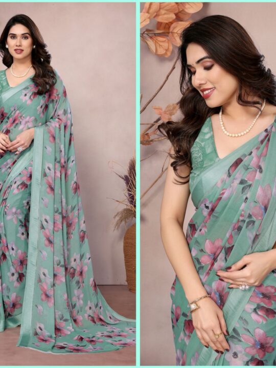 Make a graceful statement with this Bright Moss Satin Printed Saree from Pramukhmart. Its smooth satin texture and elegant print give it a chic yet timeless appeal. Designed for women of all ages, it’s perfect for daily wear or festive occasions.