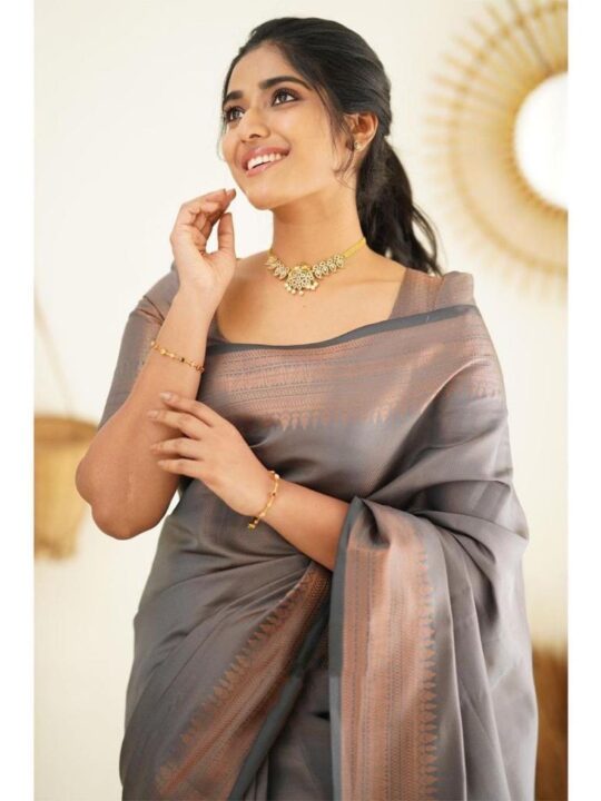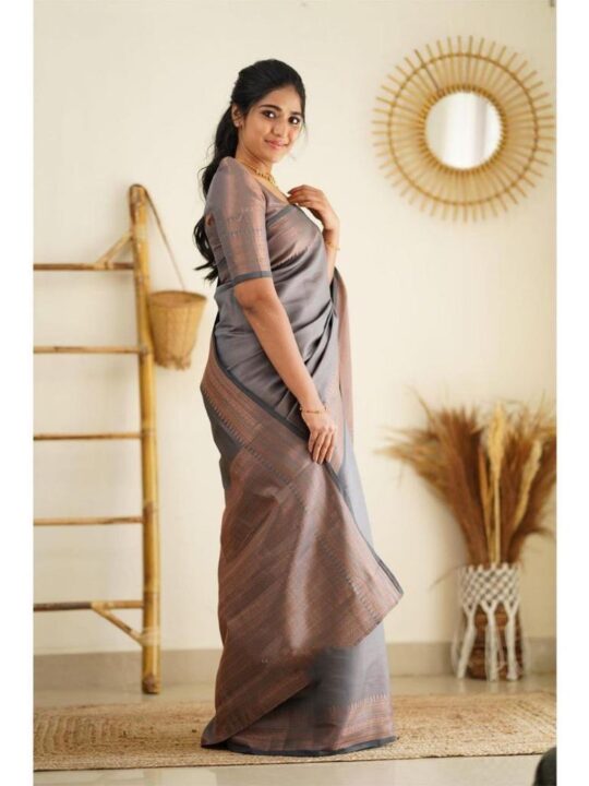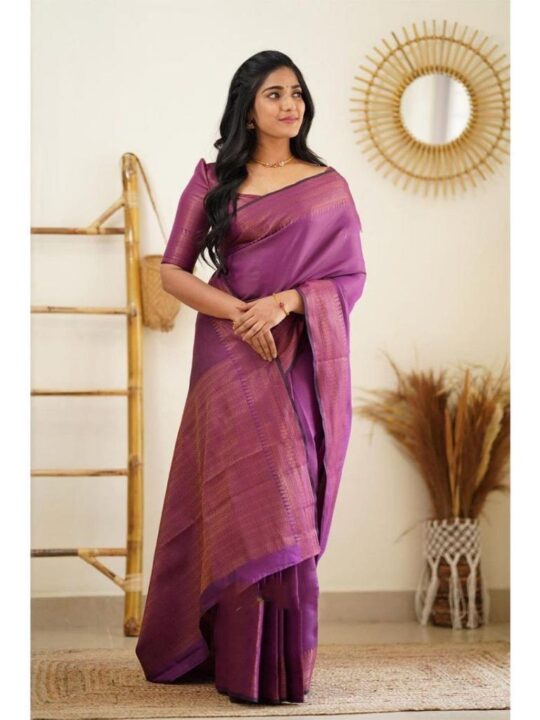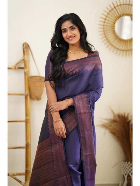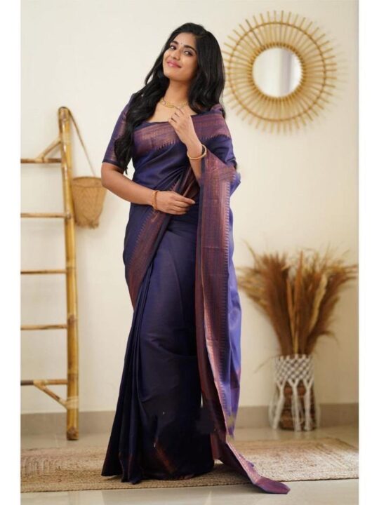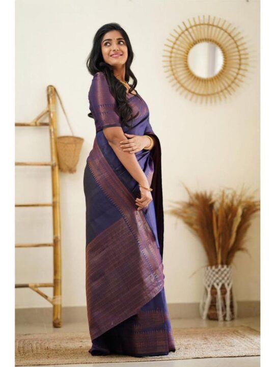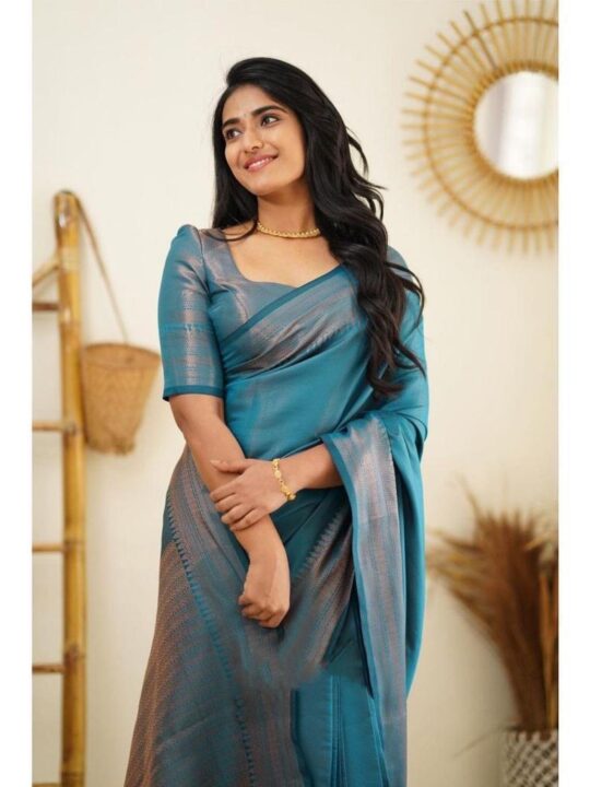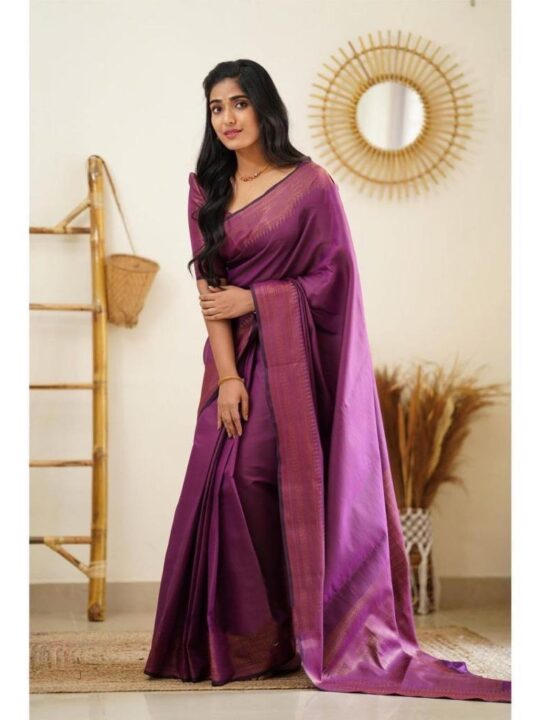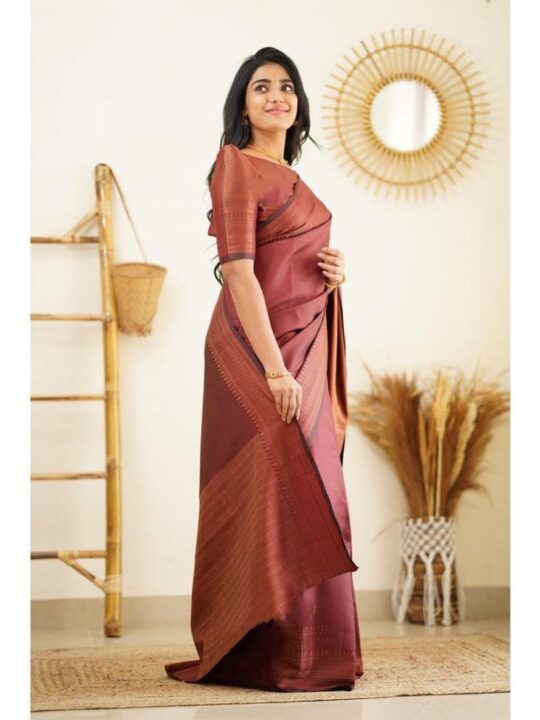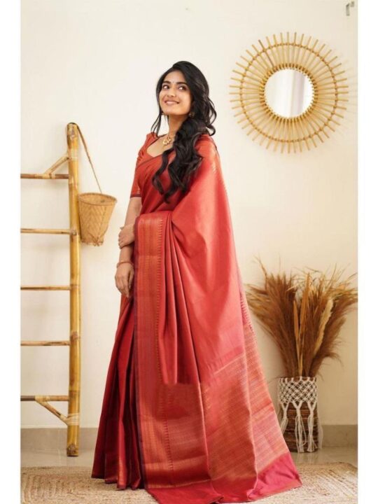 Soft lichi silk saree from Pramukhmart. Designed with intricate jacquard work and a stunning rich pallu, it’s the perfect choice for women who love timeless ethnic fashion. The exclusive jacquard border blouse completes this graceful look.