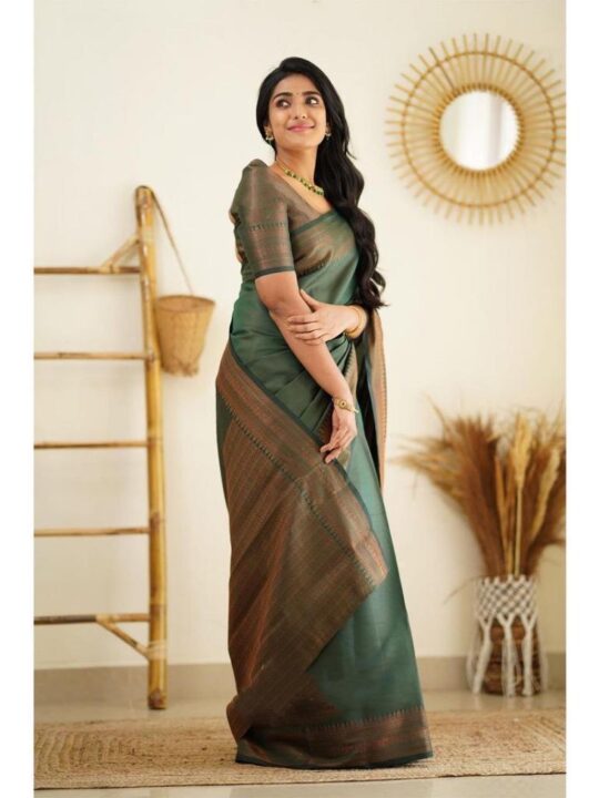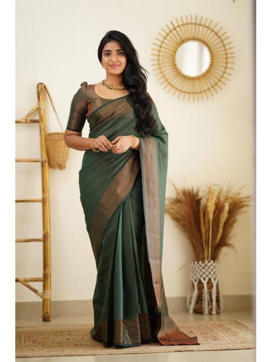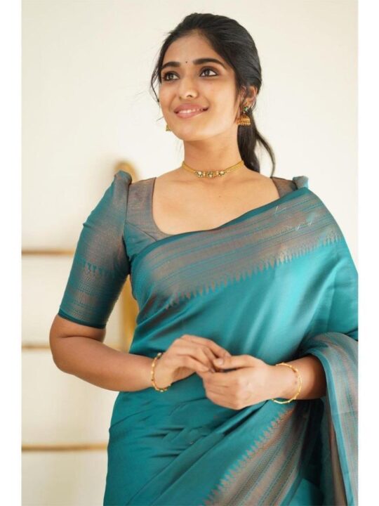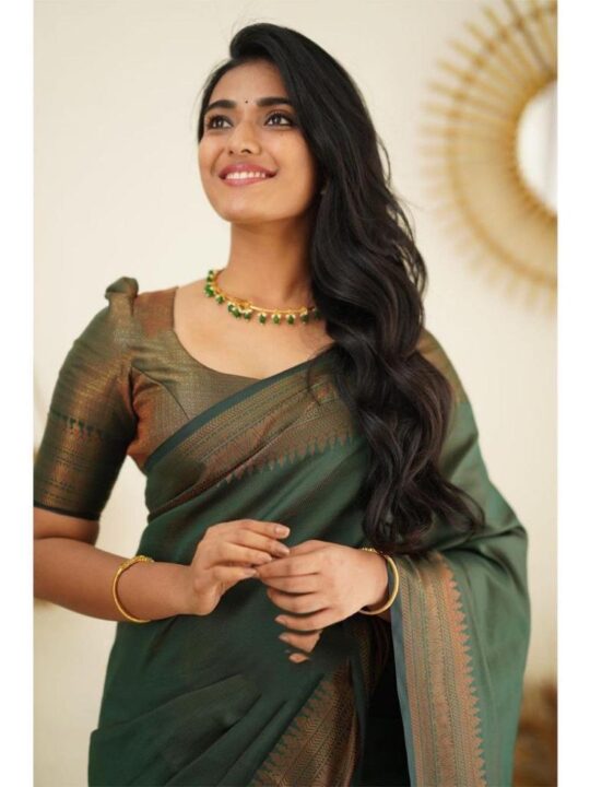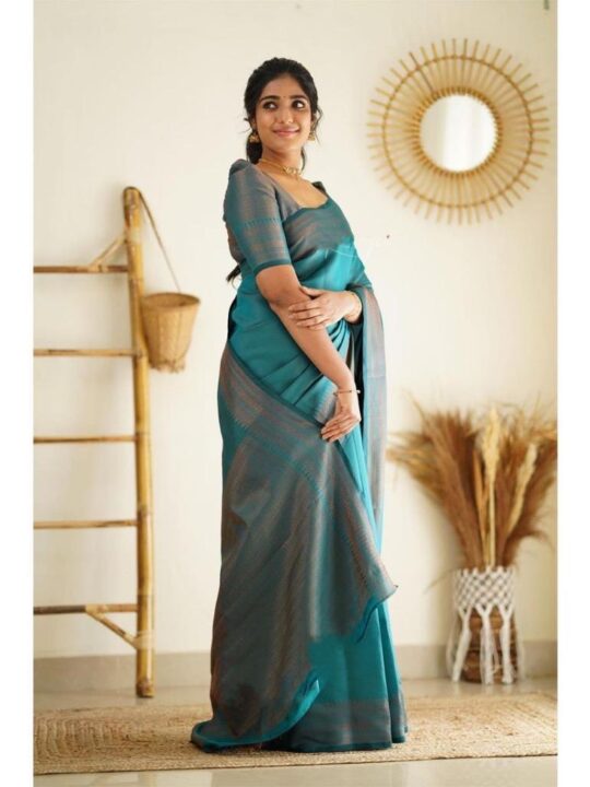 This saree pairs beautifully with gold jewelry and statement earrings. You can wear it to weddings, festive functions, or family gatherings. Because of its elegant texture, it also works great for office parties or traditional day events. In addition, a neat bun or open waves will complement the graceful drape.
