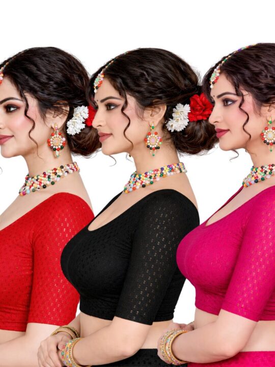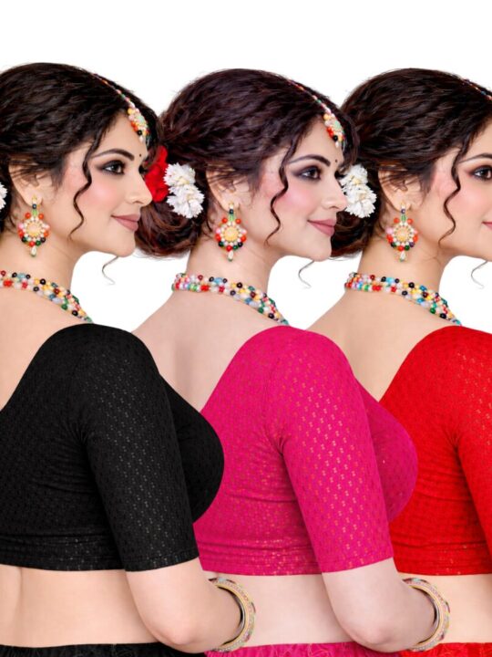 Introducing our Stretchable Blouse Black, Red And Pink from Pramukhmart! This stylish pack of three includes vibrant yellow, green, and black blouses. They’re designed for comfort and versatility, making them perfect for any occasion.