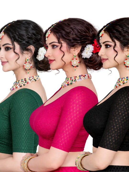 Introducing our Stretchable Blouse Pink, Green And Black from Pramukhmart! This stylish pack of three includes vibrant yellow, green, and black blouses. They’re designed for comfort and versatility, making them perfect for any occasion.