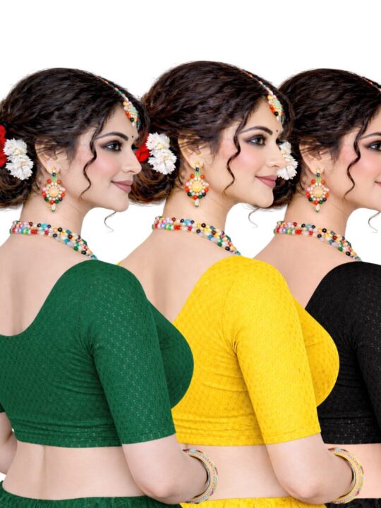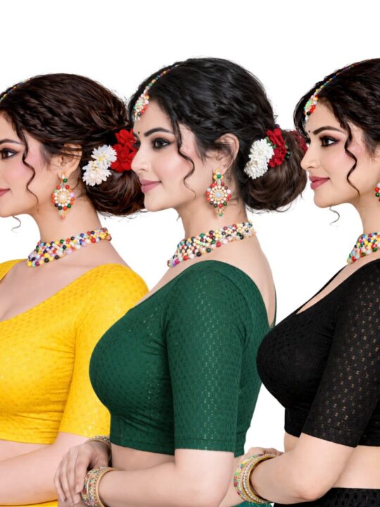 Introducing our Stretchable Blouse Yellow, Green And Black from Pramukhmart! This stylish pack of three includes vibrant yellow, green, and black blouses. They’re designed for comfort and versatility, making them perfect for any occasion.