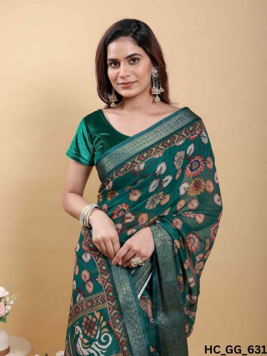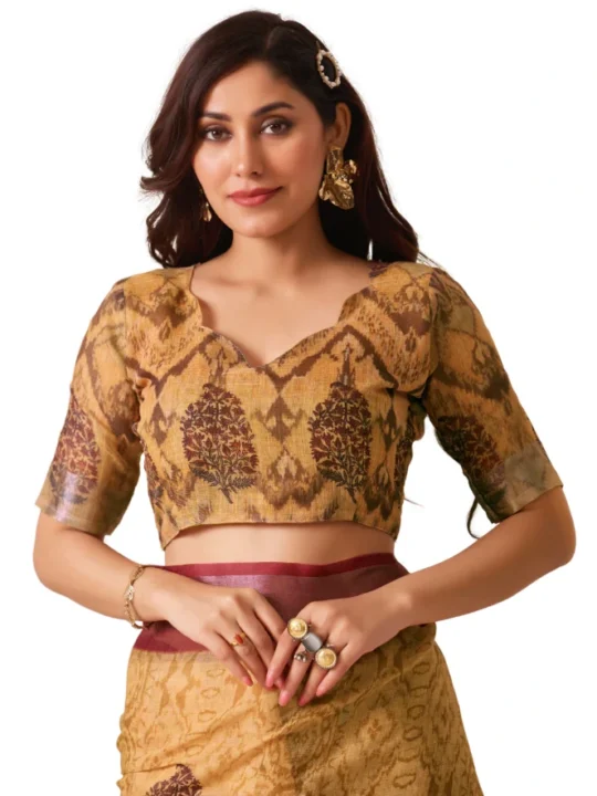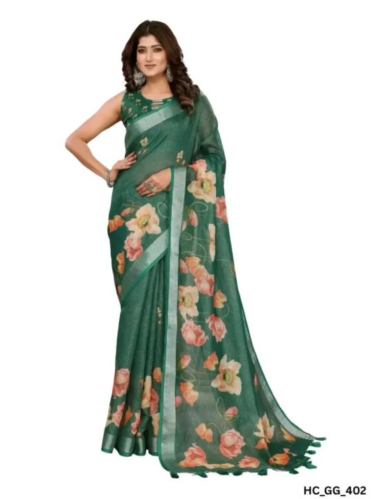 Linen saree digital print with Jacquard Patta | Pramukhmart