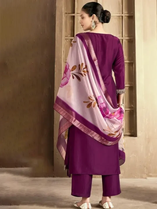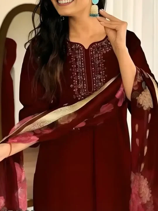 Embroidered Kurti Pant Set with Chanderi Dupatta | Pramukhmart